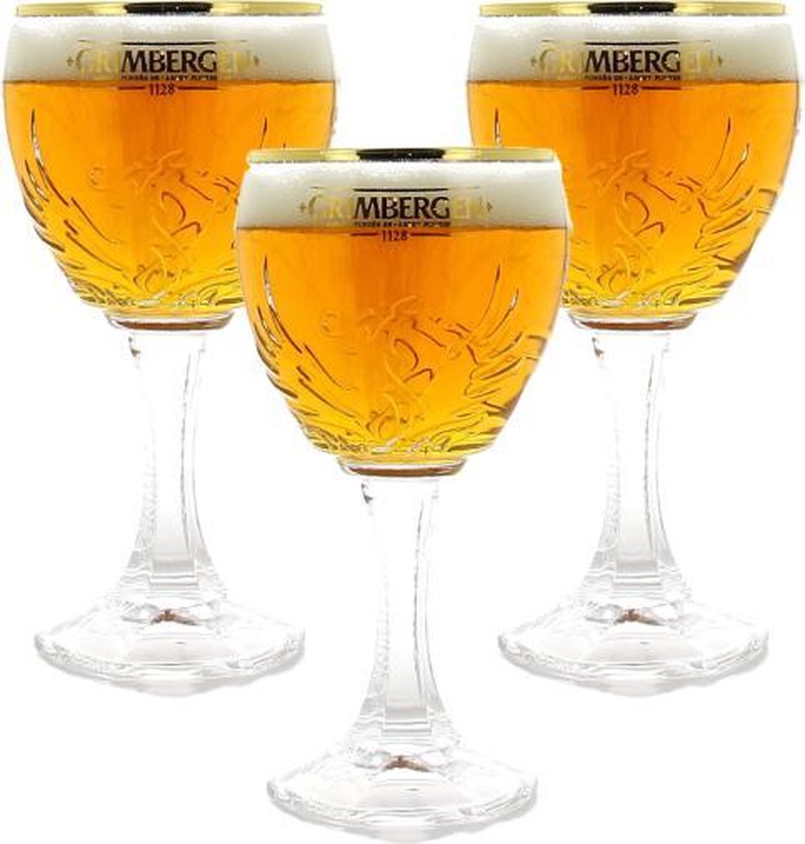 Grimbergen bierglazen van 33cl. Met gouden randje.