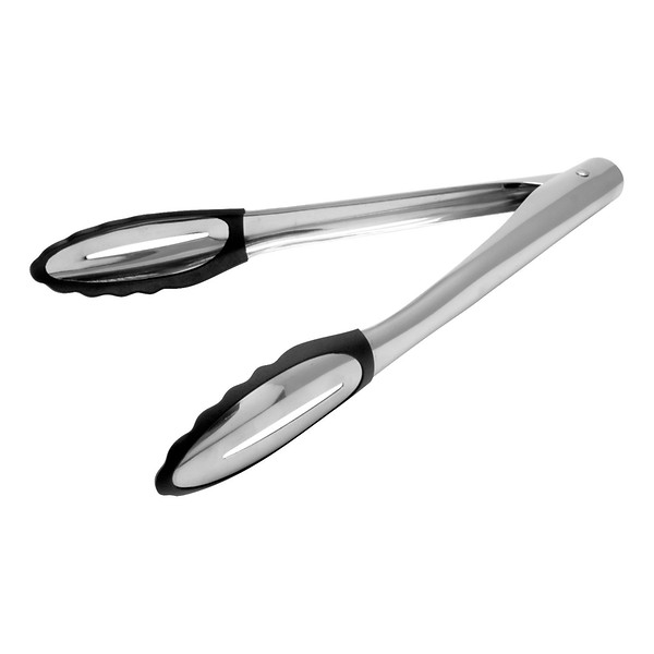 Een keukentang, gemaakt van roestvrijstaal. Perfect voor het bereiden en serveren van eten.