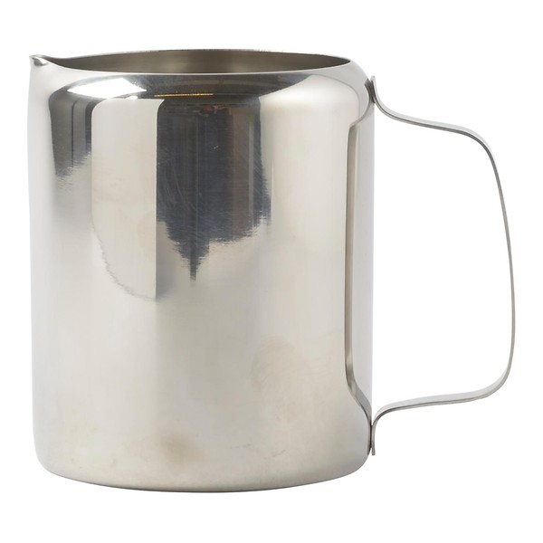Een van roestvrijstaal gemaakte roomkan, ideaal voor het schenken van melk bij de koffie.